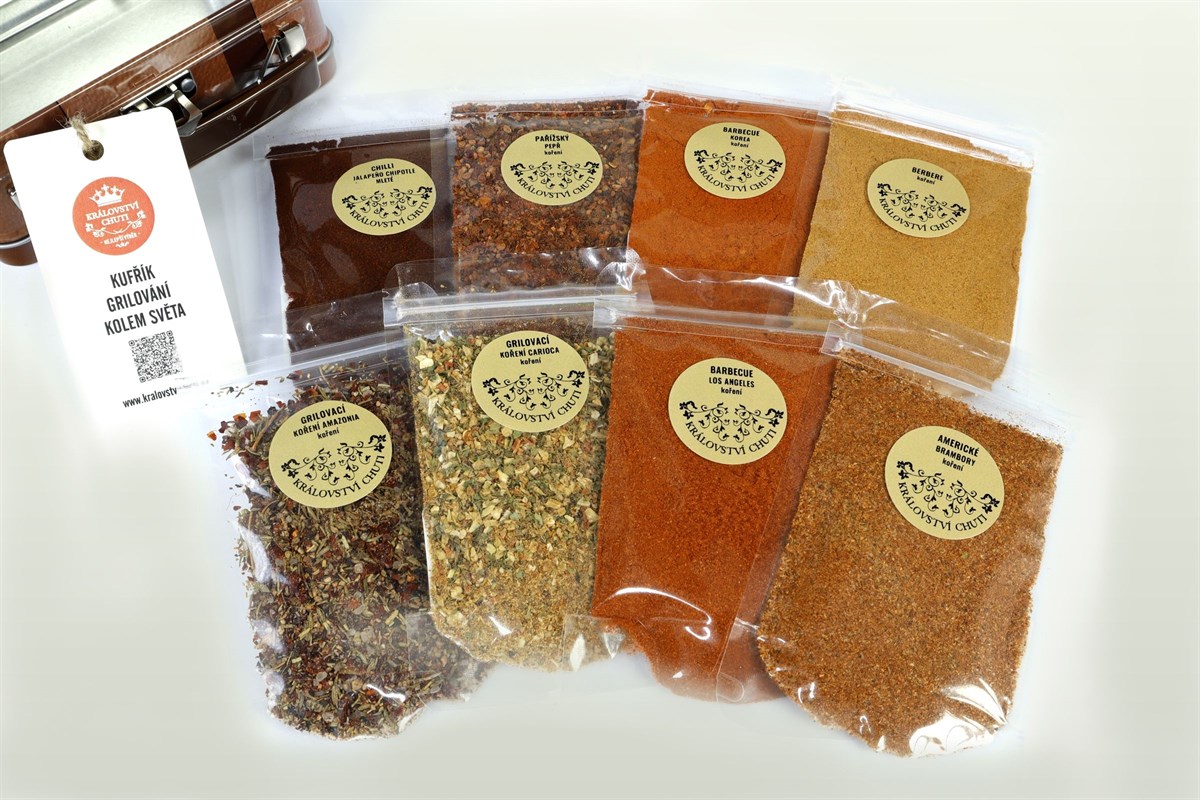 Kufrík Grilovanie okolo sveta je navrhnutý tak, aby vám alebo vašim blízkym umožnil ochutnať svetové chute priamo na vašom grile. Prinesiete trochu exotiky do svojich grilovaných jedál a vychutnáte si leto plné chutí a vôní.