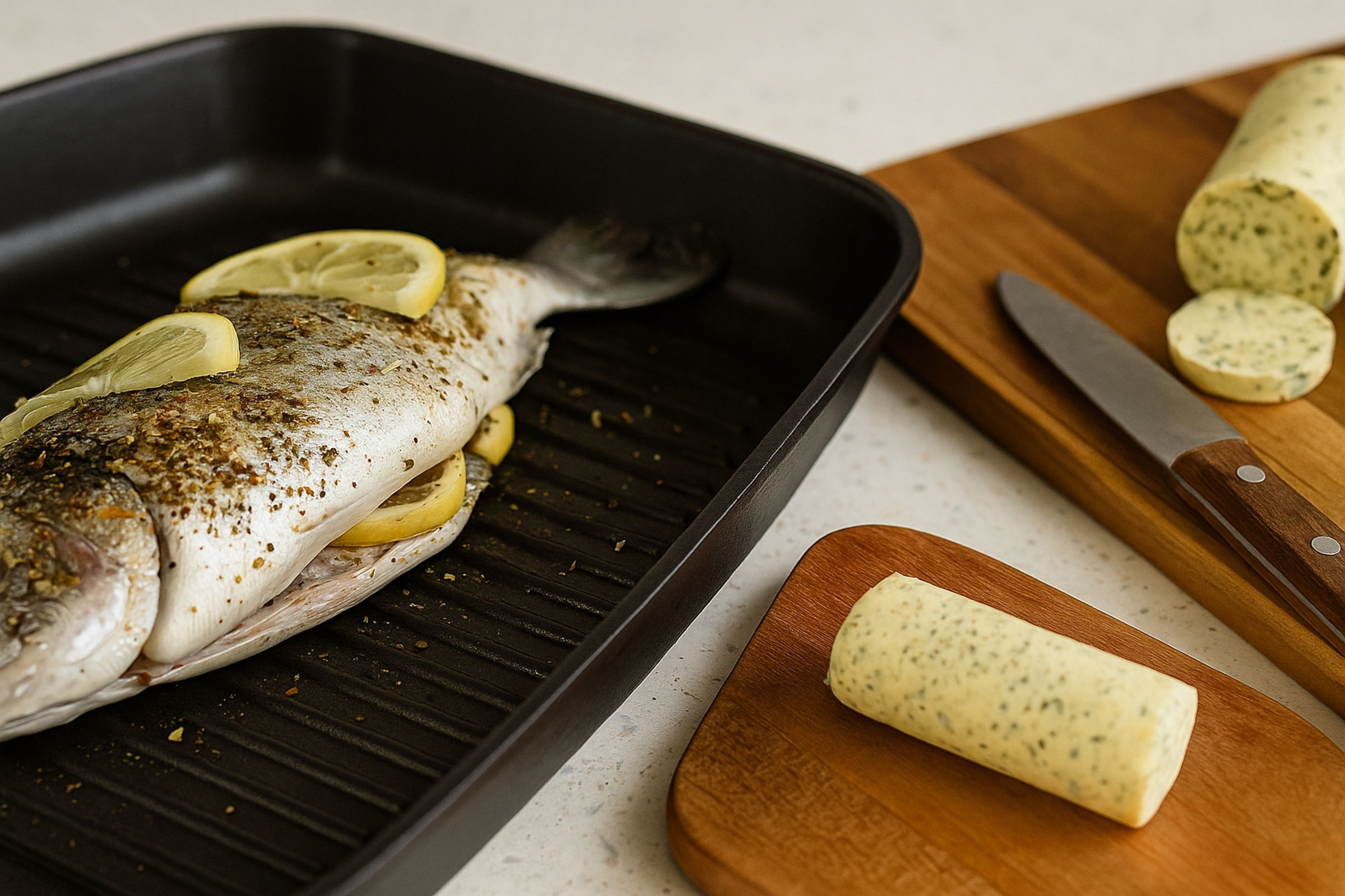 Keďže ryby nemajú príliš výrazné mäso, odporúčame ich kombinovať s jemnejšími bylinkami. Skvele funguje estragón, tymian, rozmarín alebo medvedí cesnak, ktorý dodá jemne pikantný podtón. Výhodou domáceho masla je, že si ho môžete pripraviť vopred, zamraziť a pri varení len siahnuť do mrazničky. Z vlastnej kuchyne vieme, že toto šetrí čas aj stres pri varení.